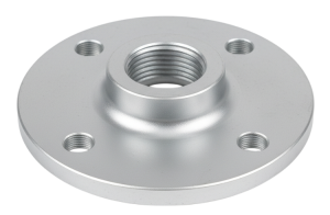 2.หน้าจานเหล็กกัลวาไนซ์ 4 รู คือหน้าจานเหล็กชุบสังกะสีเพื่อป้องกันสนิมซึ่งมีรูเจาะ 4 รู สำหรับยึดด้วยสลักเกลียว (Bolt) โดยมักใช้เป็นฐานยึดสำหรับเสาหรือราวหรือใช้เป็นข้อต่อระหว่างท่อในระบบแรงดันต่ำ เช่น ท่อน้ำที่มีขนาดเล็ก